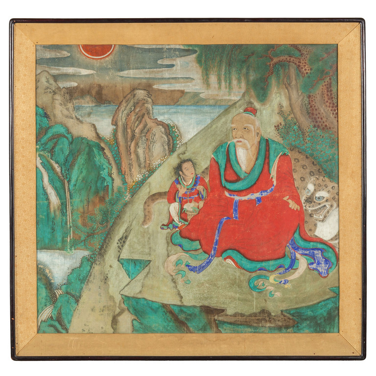 'Saggio con fanciullo' antico dipinto su seta Cina sec.XIX