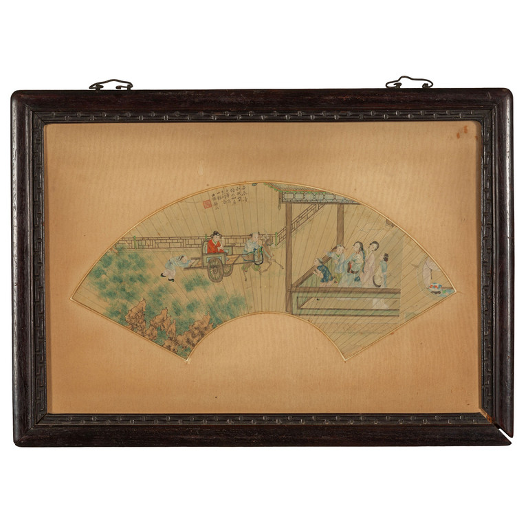 Ventaglio decorato con figure e carretto Cina sec.XIX