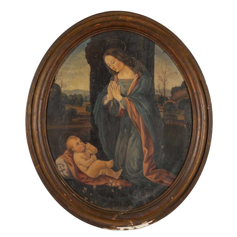 Scuola italiana sec.XIX 'Madonna con Bambino' olio di forma ovale