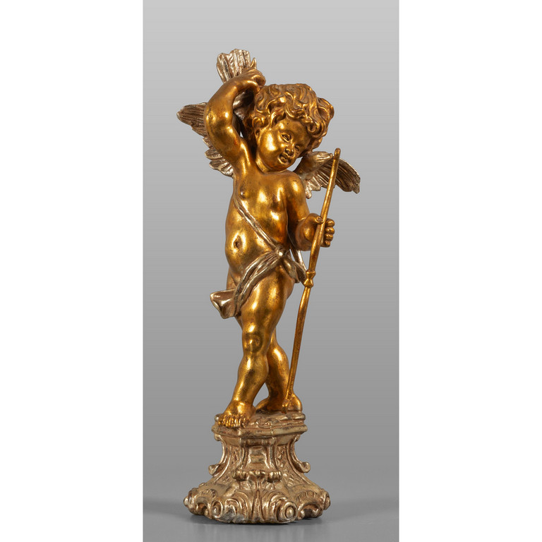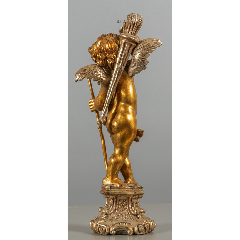 Putto arciere scultura in legno finemente intagliato dorato e argentato sec.XIX