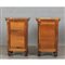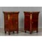 Coppia di comodini neoclassici lastronati in mogano montanti scantonati ricca decorazione in bronzo dorato piano in breccia Francia sec.XIX
