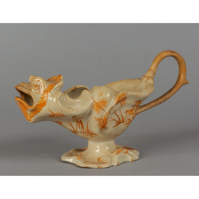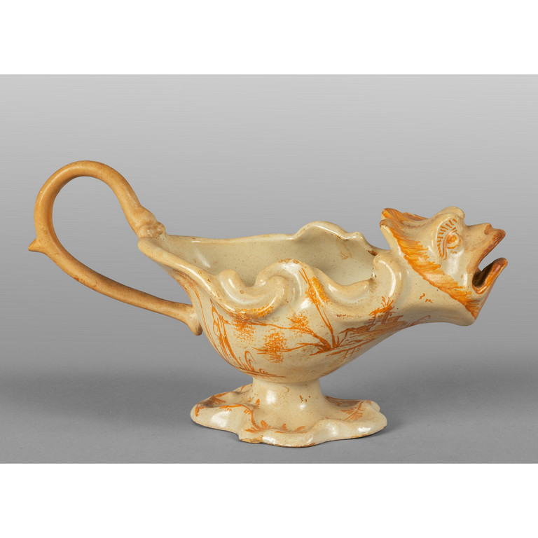 Rara salsiera in ceramica decorazione arancione su fondo bianco Savona I metà sec.XVIII