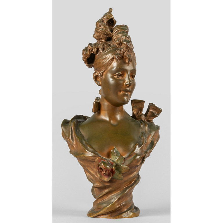 Busto femminile scultura in bronzo f.to V.Bryneel Paris inizi sec.XX