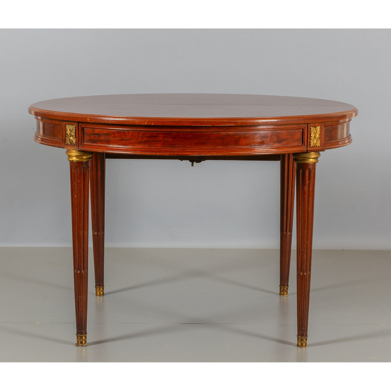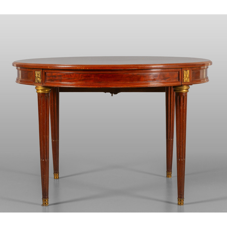 Tavolo da pranzo rotondo allungabile in mogano a quattro gambe Francia sec.XIX