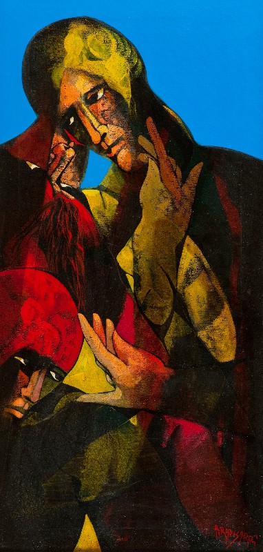 Alfio Rapisardi (Firenze 1929) FIGURE, 1977 Olio su tela, cm. 70x35 Firmato in basso a destra. Sul verso: firma e data.