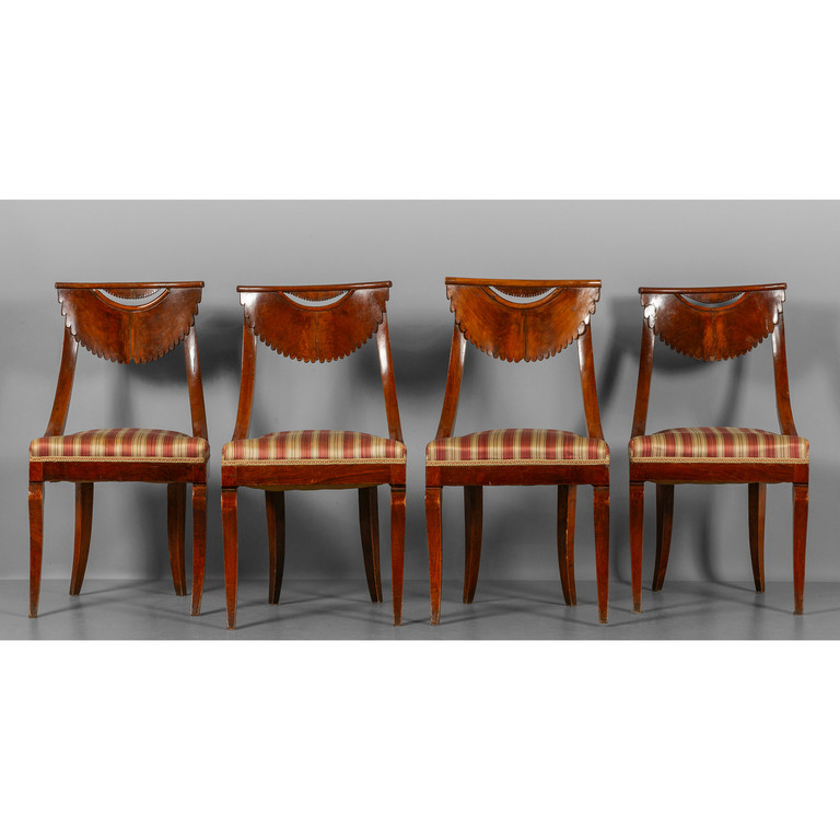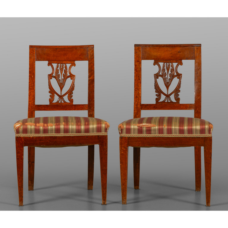 Quattro sedie Direttorio più due con seduta imbottita a righe sec. XIX