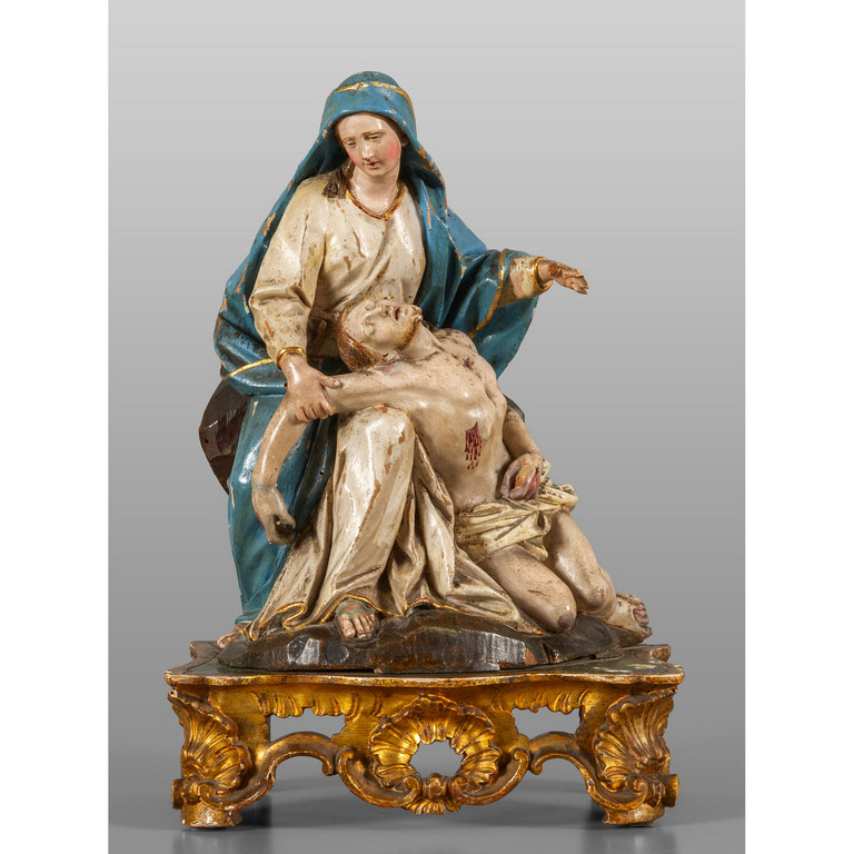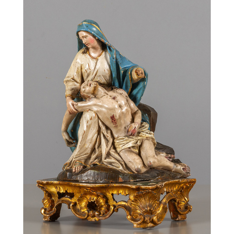 Deposizione scultura in legno finemente intagliato laccato e dorato Napoli sec.XVIII