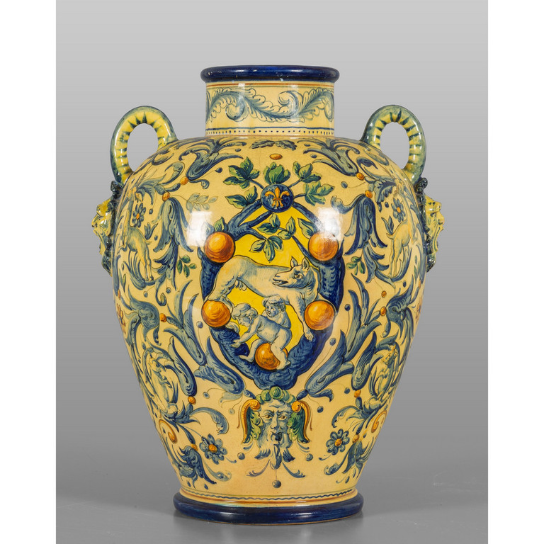 Orcio in maiolica policroma al centro stemma Medici inizi sec.XX