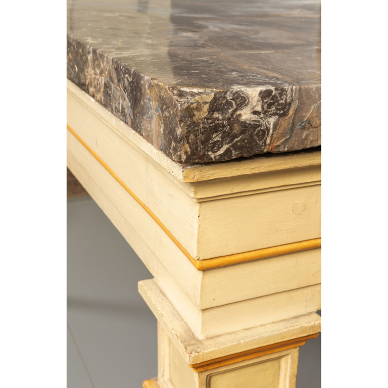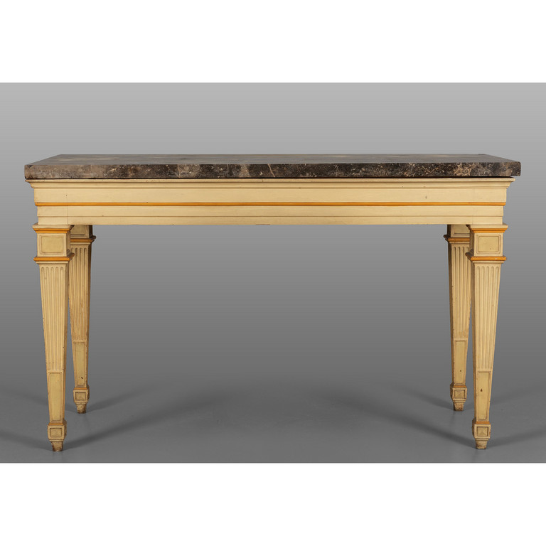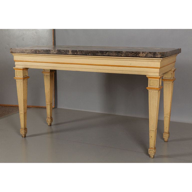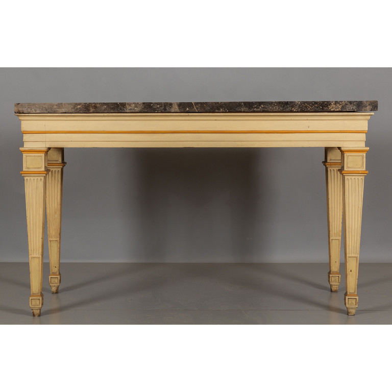 Grande tavolo Luigi XVI da centro in legno laccato gambe scanalate e controscanalate sec.XIX