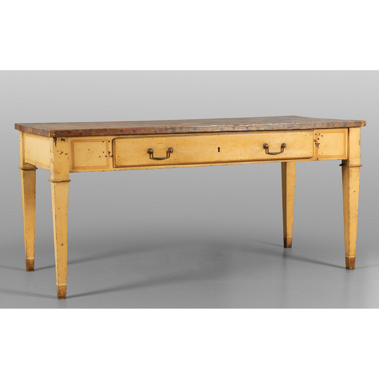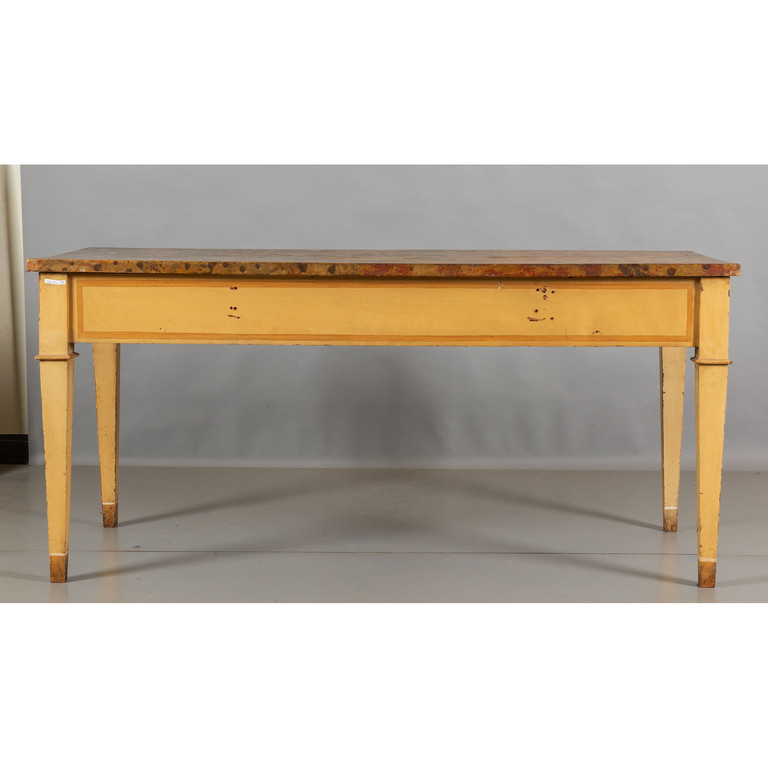 Tavolo Direttorio da centro in legno laccato un cassetto nella fascia piano a finto marmo sec.XIX