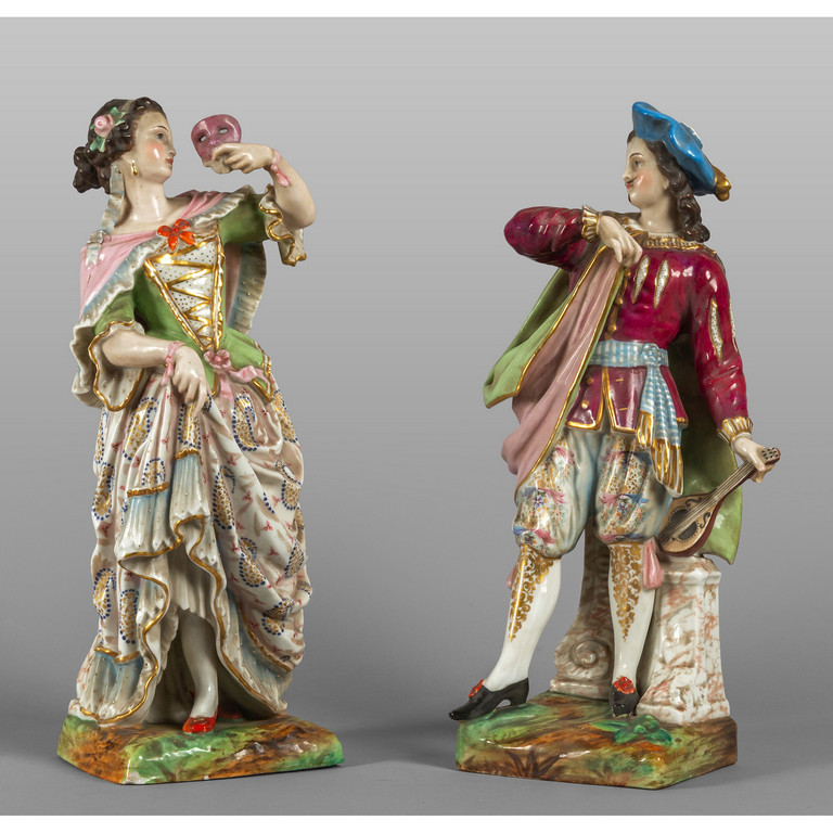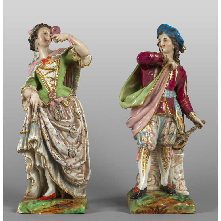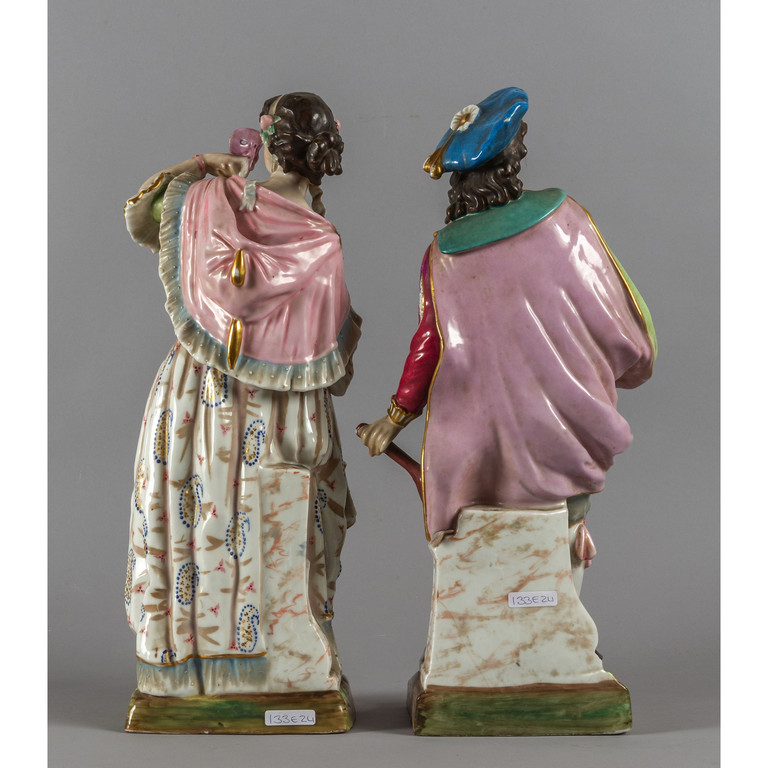 Coppia di grandi sculture in porcellana policroma raffiguranti gentiluomo e gentildonna Francia sec.XIX