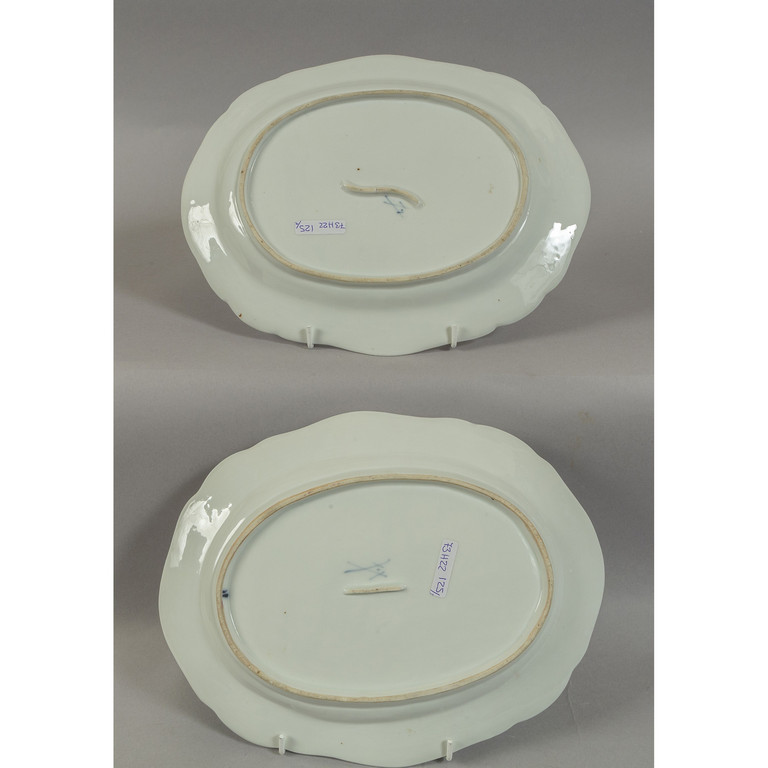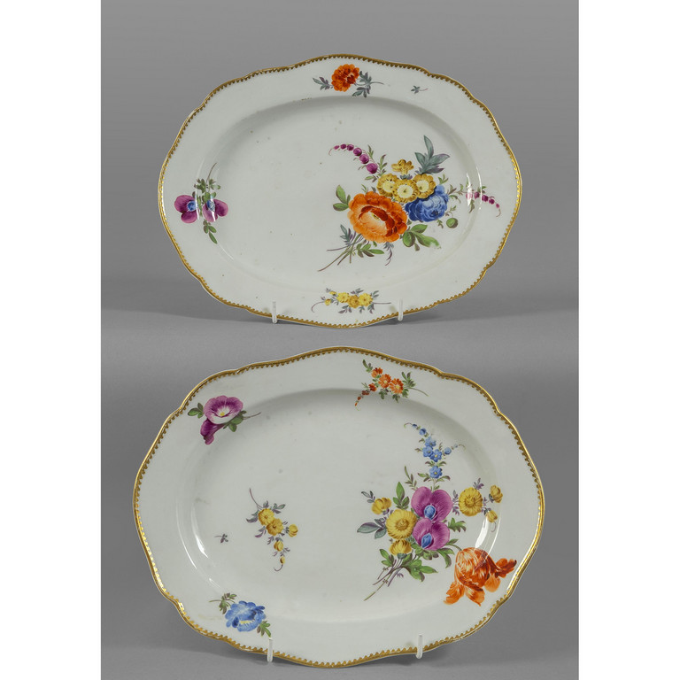 Coppia di vassoi in porcellana di Meissen decorati in policromia a fiori su fondo bianco sec.XIX