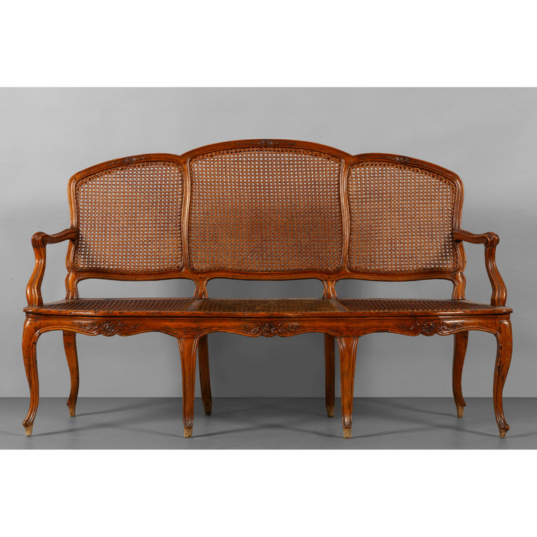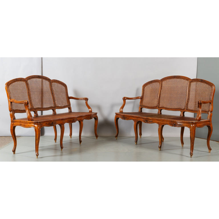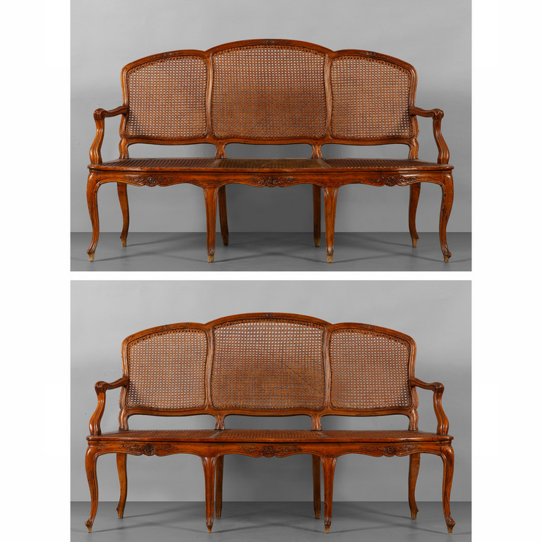 Coppia di divani Luigi XV in noce finemente intagliato Genova I metà sec.XVIII