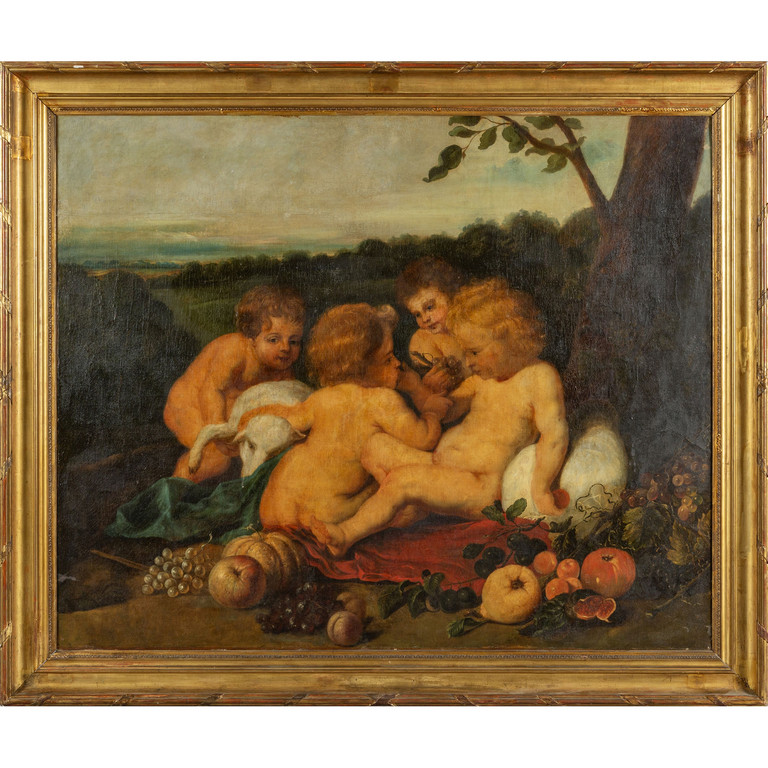'Putti in giardino' olio sec.XVIII
