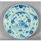 Piatto in ceramica blu su fondo berrettino decorato con castello centrale marca Stemma Savona sec.XVIII