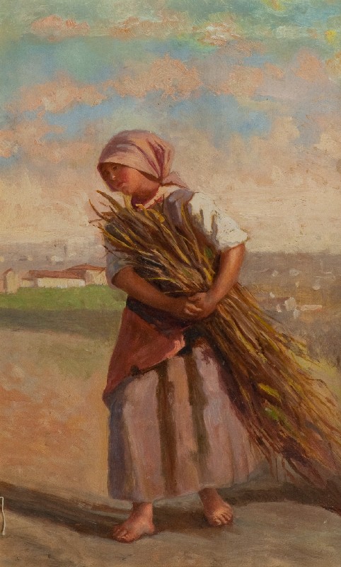 Anonimo dell'800 CONTADINA Olio su tavola, cm. 45,5x28,5