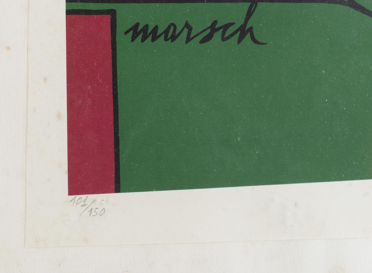 Valerio Adami (Bologna 1935), “Lieu Marsch”. - Litografia a colori su carta, firmata in basso a destra, numero di tiratura in basso a sinistra 101/150, Lastra H cm 40x30