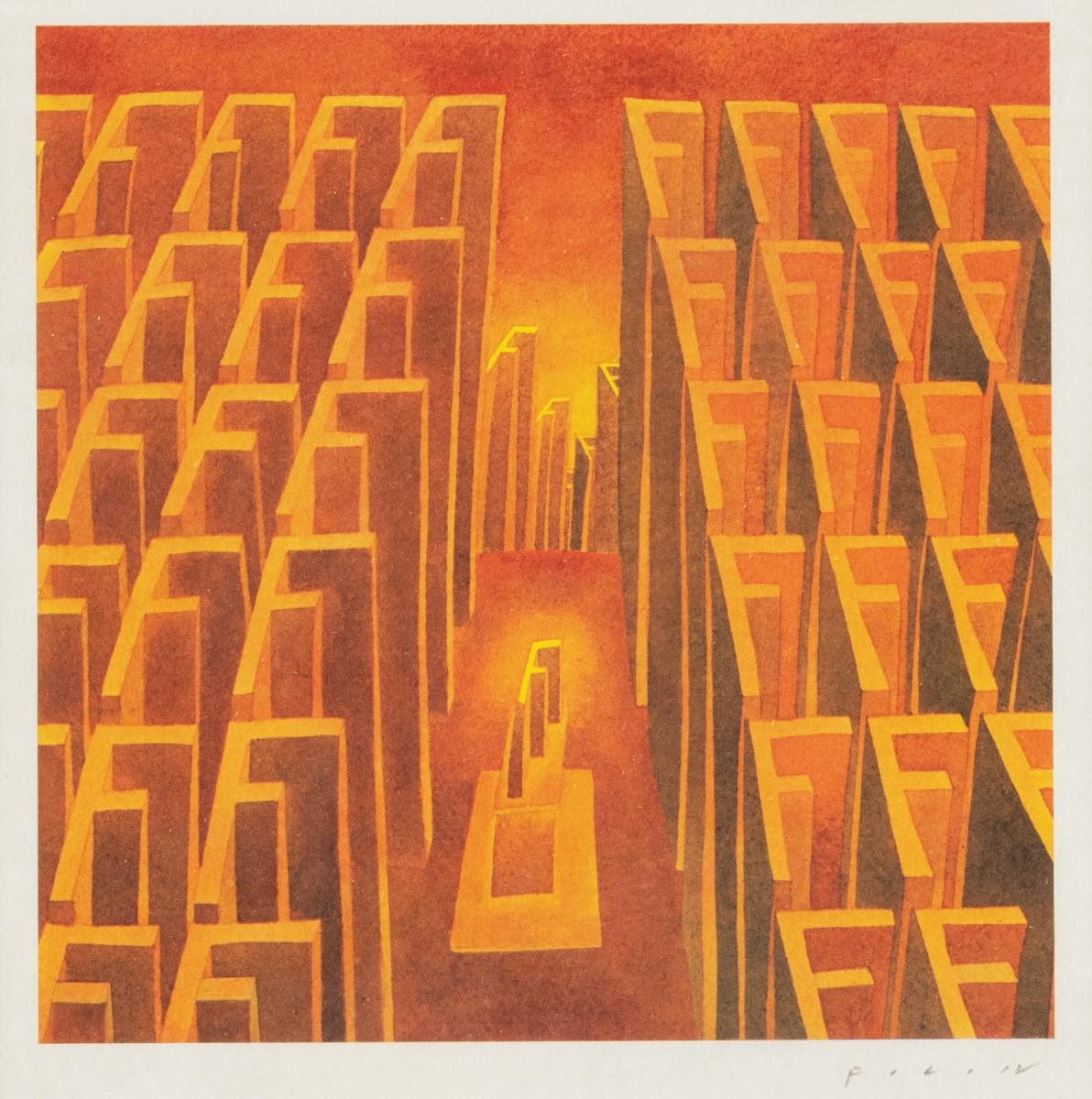 Lot 50 | Jean-Michel Folon (Uccle 1934 - Principato di Monaco 2005), “Lettera F” per la serie “L’Alfabeto”, 1972.