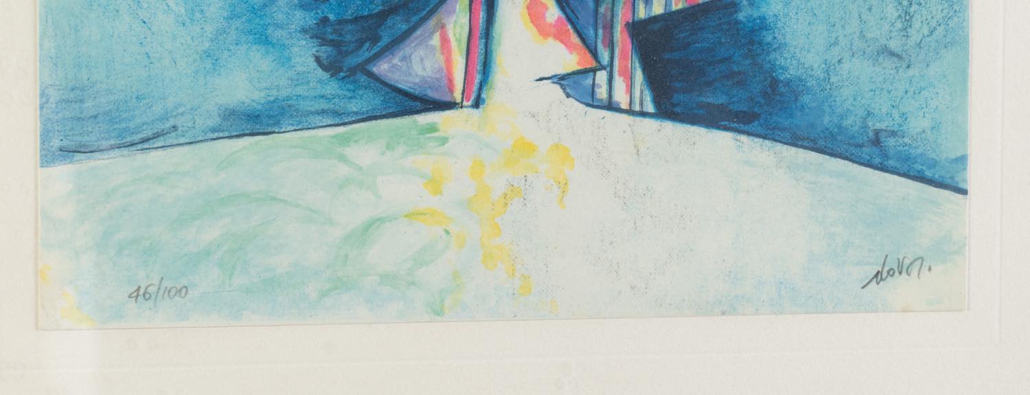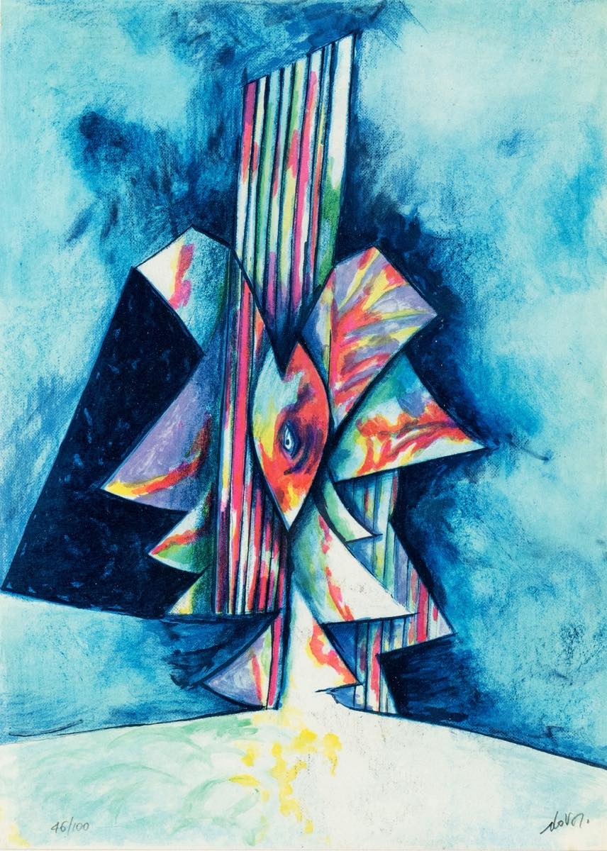 Gianni Dova (Roma 1925 - Pisa 1991), “Senza titolo”. - Litografia a colori su carta, firmato in basso a destra, numero di tiratura in basso a sinistra 46/100, H cm 33x24
