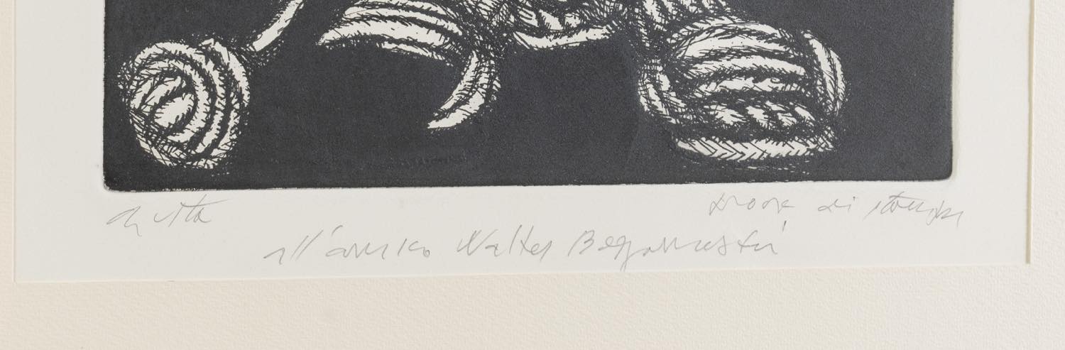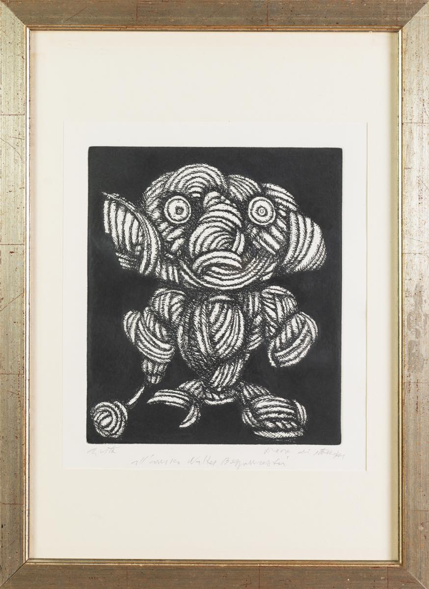 Luciano De Vita (Ancona 1929 - 1992), “Senza titolo”. - Incisione su carta, firmata in basso a sinistra, esemplare in basso a destra prova di stampa, reca in basso al centro dedica, Lastra H cm 30x30