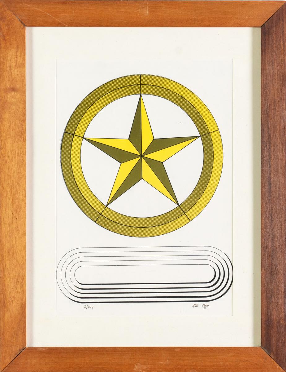 Lucio del Pezzo (Napoli 1933 - Milano 2020), “Senza titolo”. - Litografia a colori su carta, firmato in basso a destra, numero di tiratura in basso a sinistra 2/101, H cm 28x19.5
