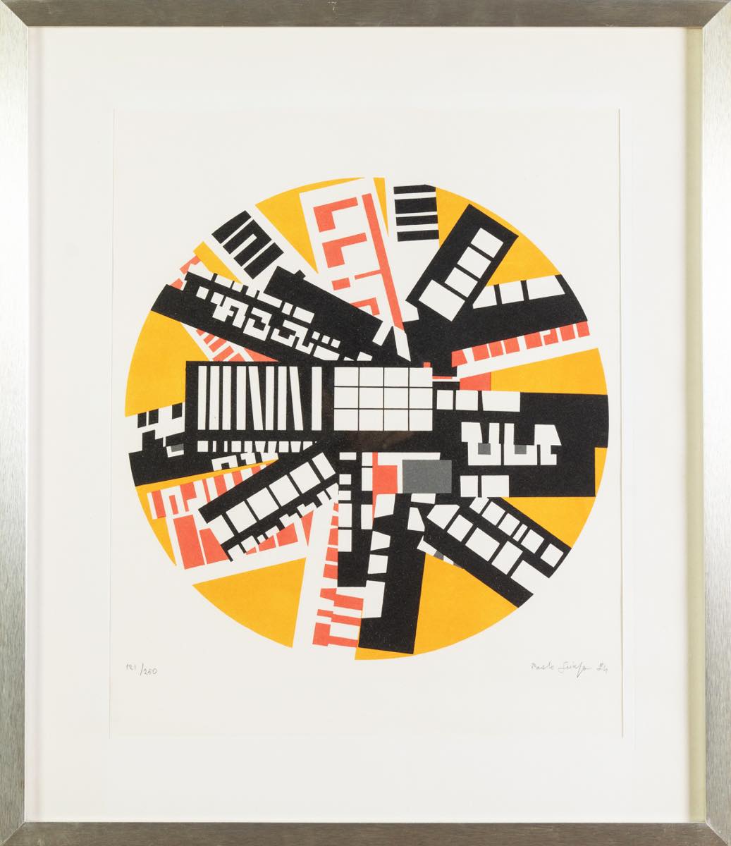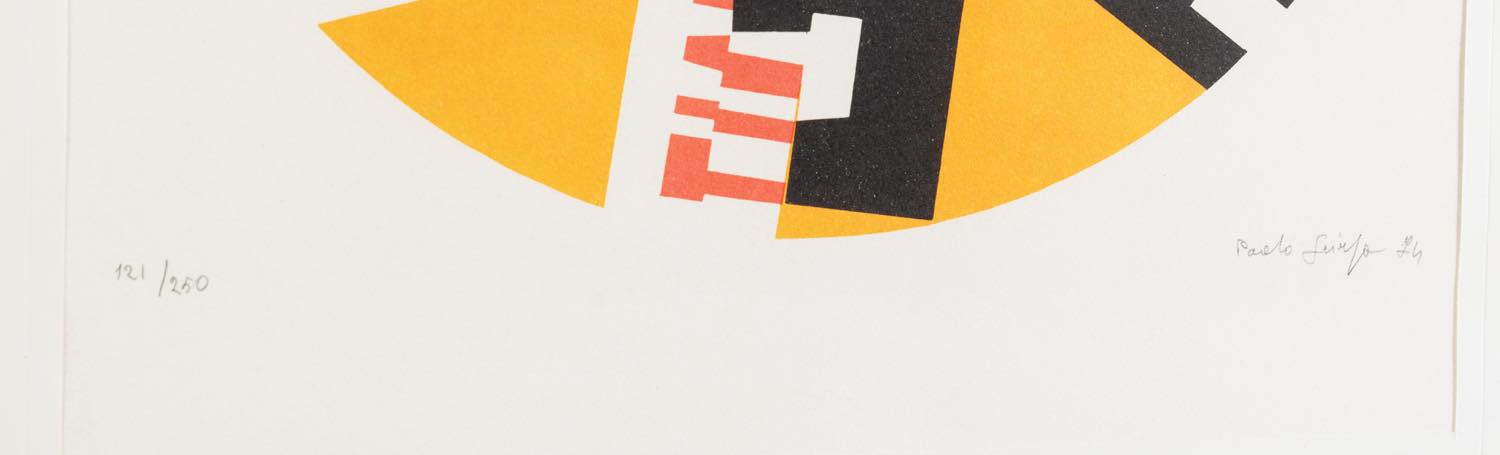 Paolo Scirpa (Siracusa 1934), “Senza titolo”, 1974. - Litografia a colori su carta, firmata e datata in basso a destra, numero di tiratura in basso a sinistra 121/250, H cm 45x36.5