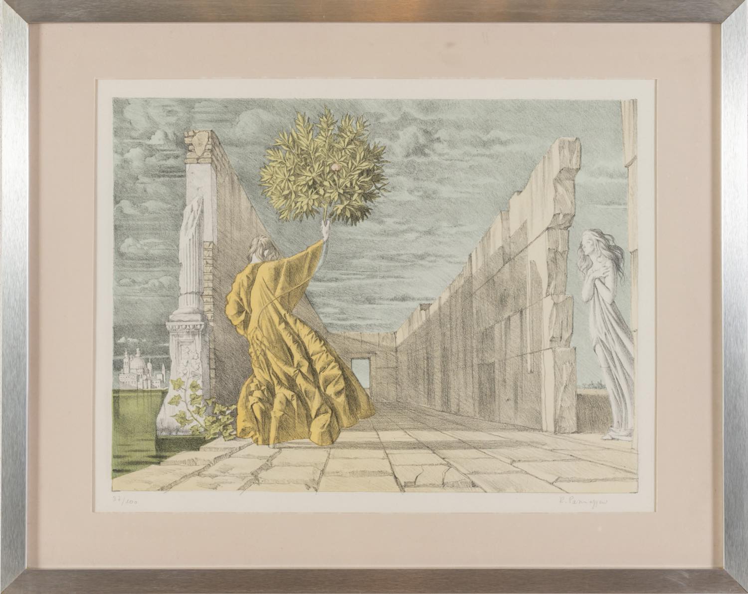 Romano Parmeggiani (Venezia 1930 - Santoro 2002), “Senza titolo”. - Litografia a colori su carta, firmata in basso a destra, numero di tiratura in basso a sinistra 37/100, Foglio H cm 56x71