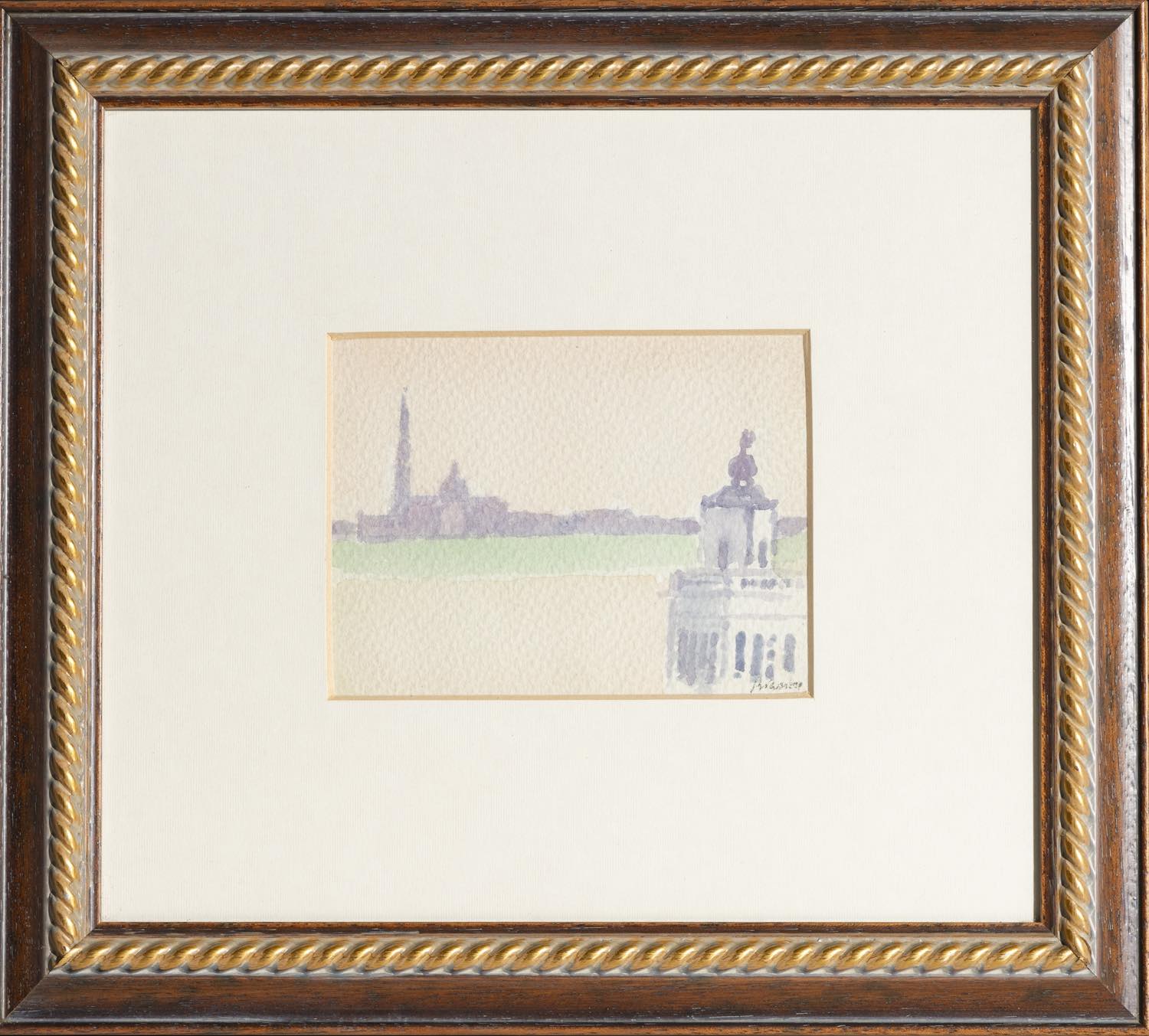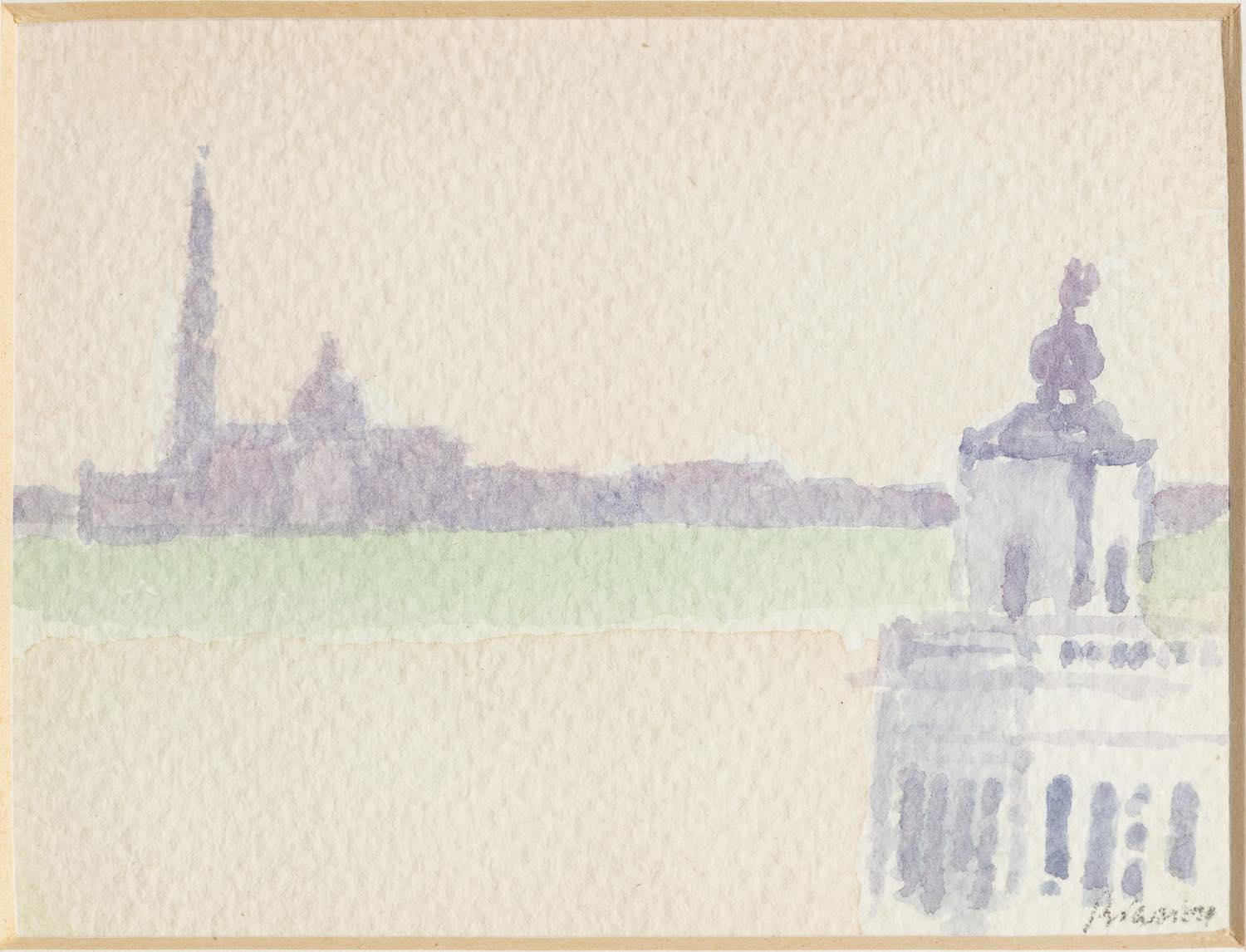 Renzo Biasion (Treviso 1914 – Firenze 1996), “Isola di San Giorgio a Venezia”. - Acquerello su cartone, firmato in basso a destra, H cm 11x15