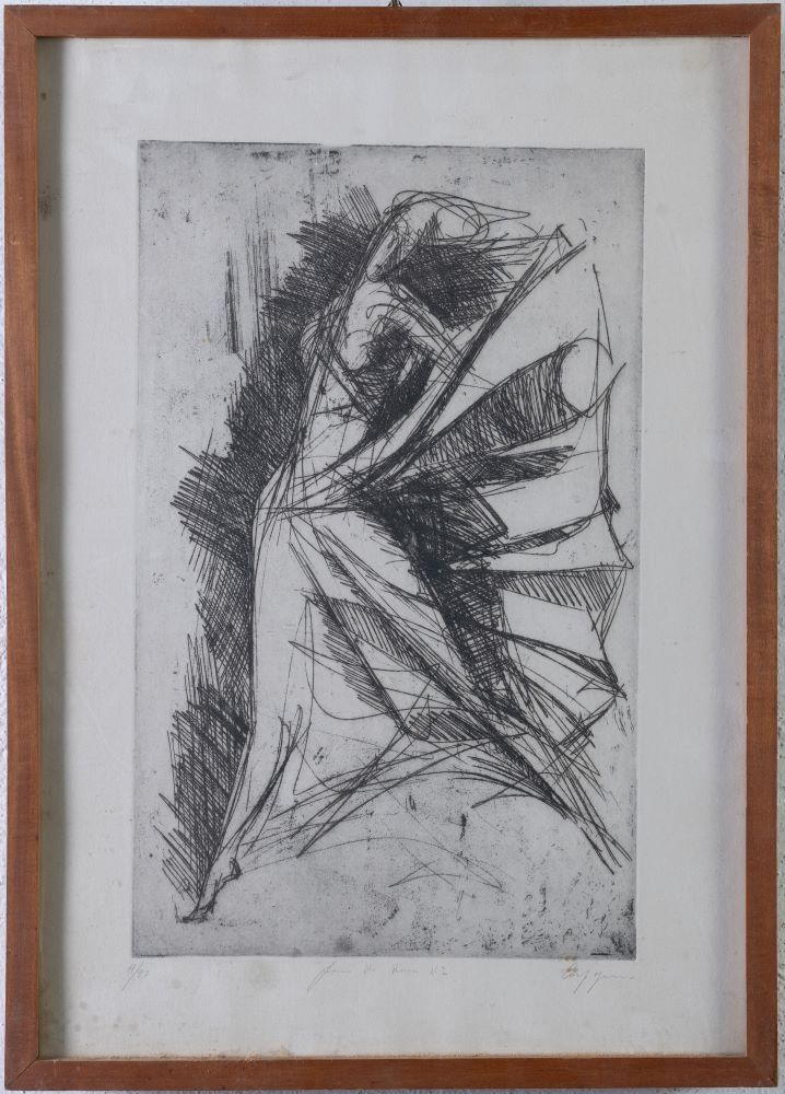 Dante Carpigiani (Mirandola 1921). Figura di donna N. 2. Lastra cm. 39x24. In cornice cm. 52,5x37,5.