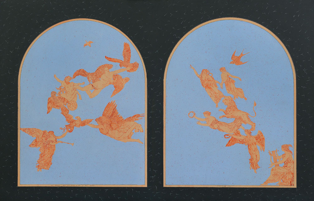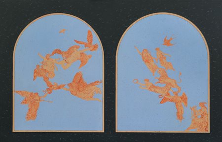acrilici su carta intelata cm. 98x152, firma e anno in basso a destra, titolo in basso a sinistra, opera priva di cornice.