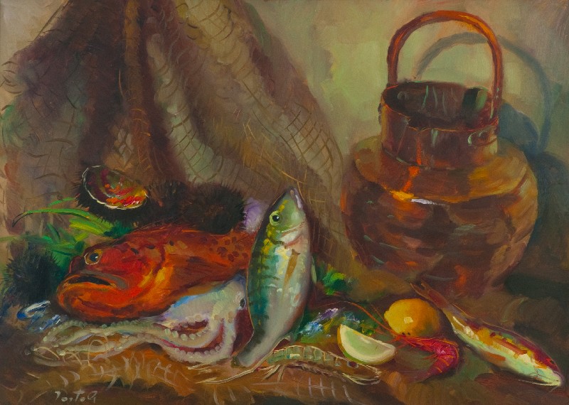 Ennio Tortoli (Livorno 1928) NATURA MORTA Olio su faesite, cm. 50x70 Firmato...