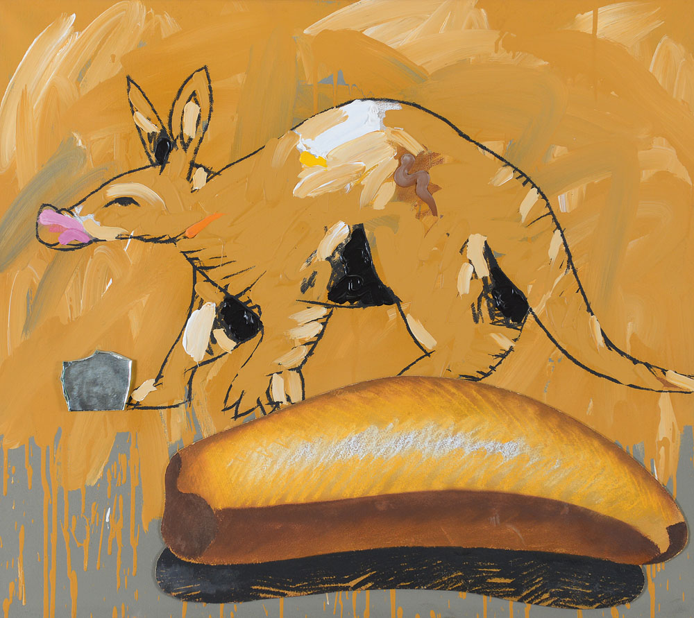 olio, acrilico e applicazioni su tela cm. 70x80, firma, titolo, anno ed etichetta dell'artista al retro, dichiarazione d'autenticità dell'artista e Archivio Generale Concetto Pozzati n° 1521/07 su foto.