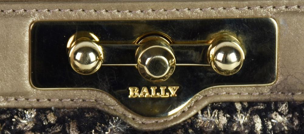 Bally CLUTCH DESCRIPTION: Fabric clutch with champagne leather inserts and...
