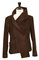 Giacca con ampio e assimmetrico collo a scialle allacciata a doppiopetto semifoderata, realizzata in tessuto fustagno di cotone, colore marrone. Grande tasca applicata sul lato destro. Taglia IT 42 Made in Italy. Anni '90. Perfettamente conservata.
