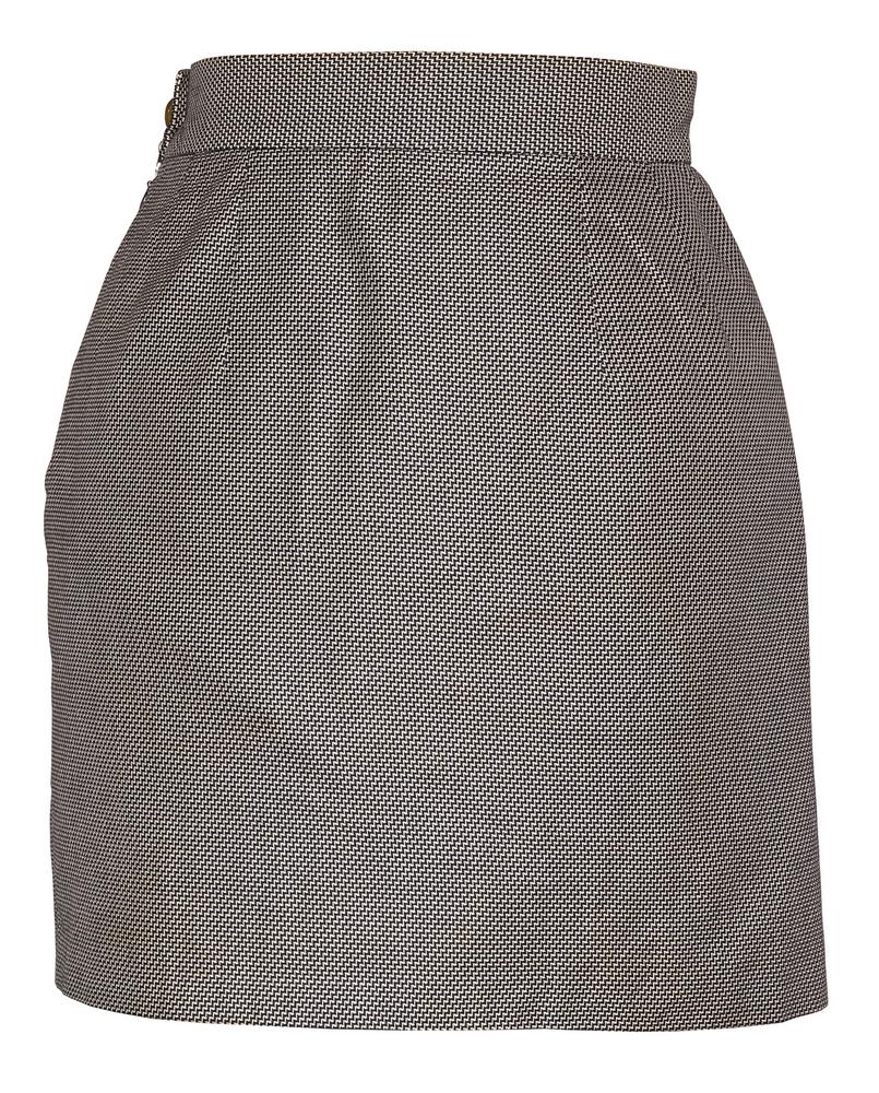 Completo in cotone disegno optical bianco e nero composto da: giacca 3 bottoni foderata modello Bettina con cintura e maniche corte, gonna foderata. Made in Italy primi anni 90. Taglia IT 42. Perfettamente conservato.