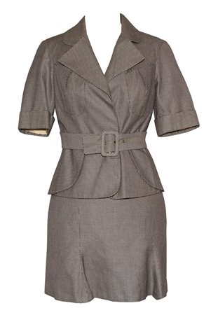 Black and white optical design cotton suit composed of: Bettina model lined 3-button jacket with belt and short sleeves, lined skirt. Made in Italy in the early 1990s. Size IT 42. Perfectly preserved.