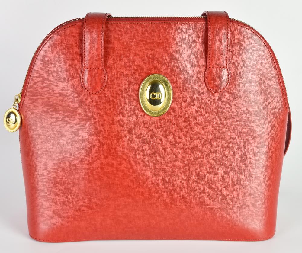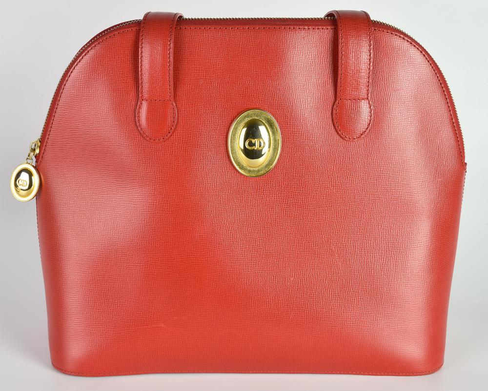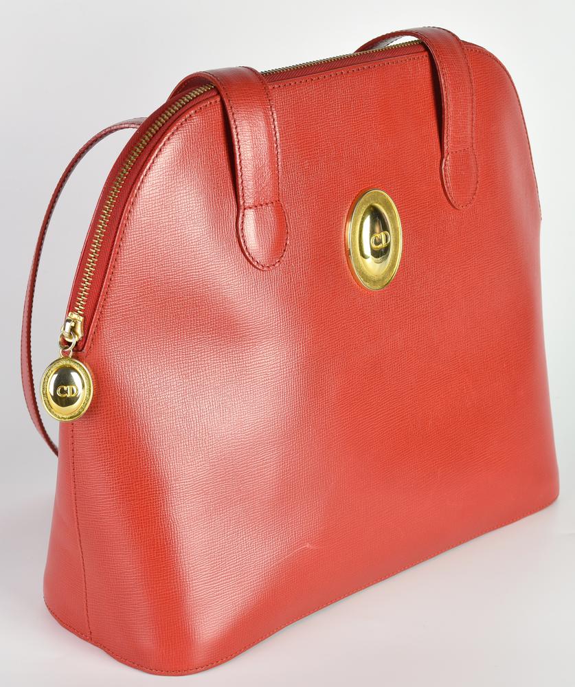 Christian Dior VINTAGE BAG DESCRIPTION: Red leather shoulder bag with double...