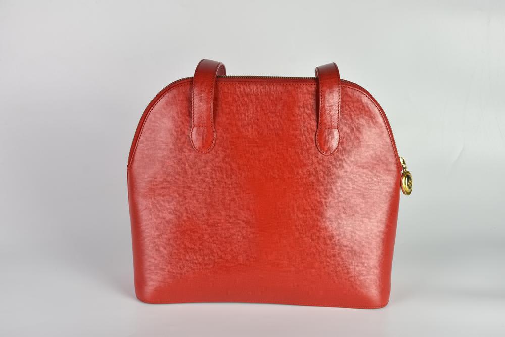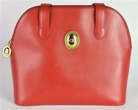 Borsa a spalla in pelle rossa martellata con doppio manico. Chiusura con cerniera. Interno in pelle liscia organizzato in un unico vano con taschino laterale con cerniera. Medaglione CD dorato emblematico della Maison, ripreso come tiretto della cerniera. Hardware in metallo dorato. Cm 31,00 x 27,00 x 11,00. Altezza coi manici cm 59,00. Accompagnata da garanzia. Prodotto in Francia. Lievissimi segni d’uso che non compromettono le ottime condizioni generali. Ben conservata.