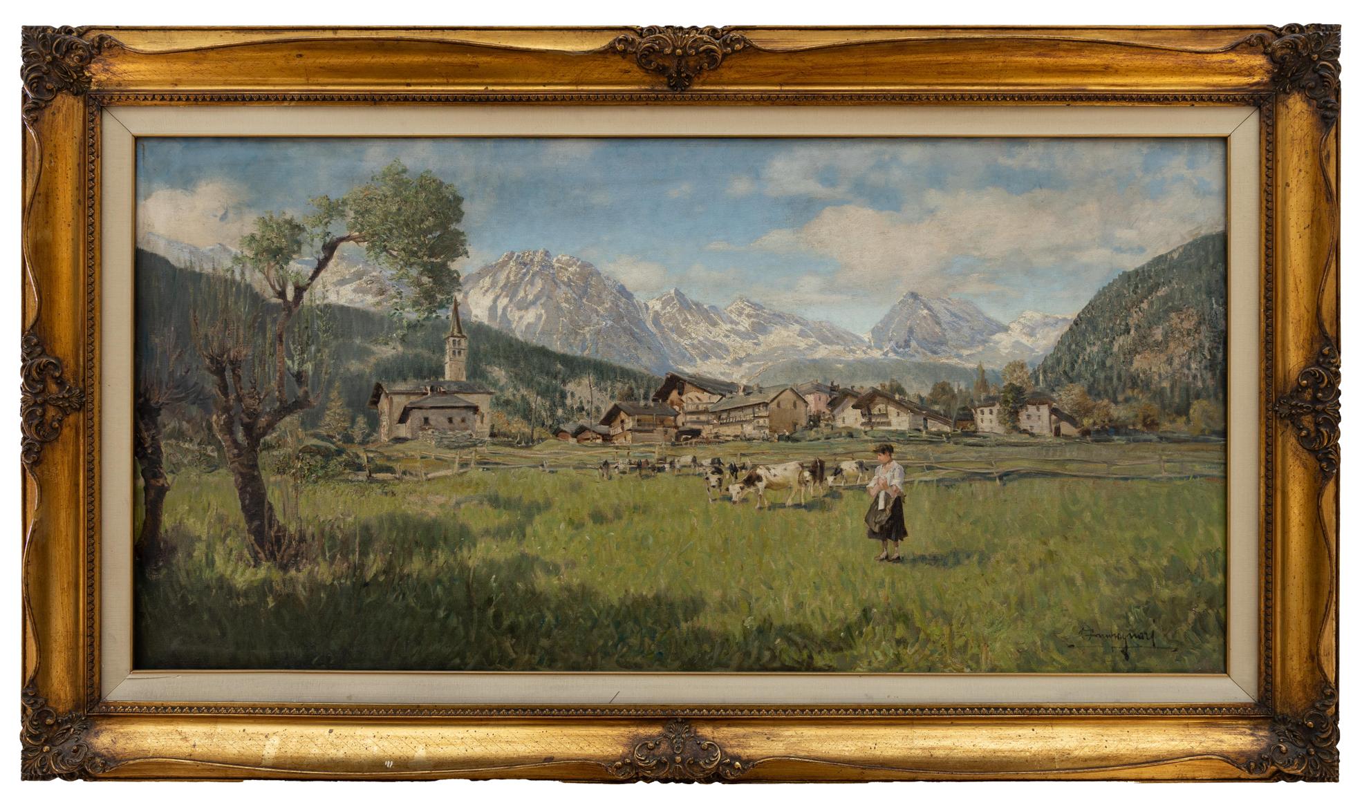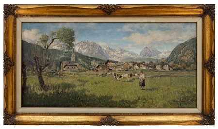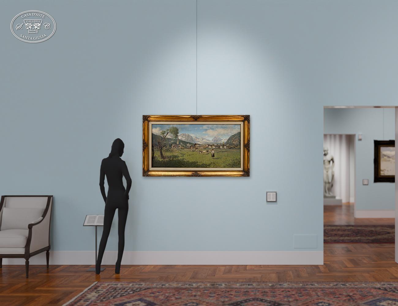 Ottorino Campagnari - Gran Combin da Ollomont (Aosta) - Mestre 1910 - Torino 1982 - Olio su tela cm 60x120 - Ottorino Campagnari è stato un illustre artista paesaggista dello stile tardo ottocentesco, la cui carriera artistica ha inizio fin da giovane. Si specializzò nell'affresco di scene montane e nelle vibranti rappresentazioni delle mareggiate lungo la costa ligure, in particolare nelle vicinanze di Varigotti, dove spesso soggiornava per trarre ispirazione.La sua presenza artistica è stata notevole, partecipando a numerose mostre nazionali, tra cui spicca la sua partecipazione alla Promotrice di belle arti di Torino nel 1942. Campagnari ha tenuto sia mostre personali che ha partecipato a esposizioni collettive in Italia e all'estero.Le sue composizioni si caratterizzano per la loro piacevolezza e per la capacità espressiva dell'artista. Questa capacità espressiva è indubbiamente degna di interesse, paragonabile ai suoi paesaggi. È sostenuta da una solida e attenta preparazione artistica, che gli ha permesso in molti casi di catturare in modo straordinario la bellezza e l'autenticità di un paesaggio, spesso accompagnato da figure umane, e il mondo circostante. Questa impostazione artistica è rimasta costante nel tempo, mantenendo la sua struttura e la sua suggestiva adesione alle montagne che erano care ad altri grandi maestri dell'arte come Maggi, Musso, Rolla e Angelo Abrate.È evidente che Campagnari ha mantenuto intatto il suo dialogo con la natura, preservando la genuinità delle sue immagini, la fedeltà all'ambiente e la coerenza nella testimonianza di un dipingere che ha conquistato il pubblico per il suo costante amore per l'antica "veduta" e per il suo sincero intento rappresentativo. La sua raffigurazione è sempre piacevole, pronta a catturare il profondo significato di una tradizione paesaggistica che sembra resistere a ogni cambiamento estetico. Questa tradizione è indissolubilmente legata alla cultura figurativa piemontese dell'Ottocento e del Primo Novecento.Campagnari ha sviluppato una linea espressiva distintiva e inconfondibile, dimostrando una notevole abilità nel rendere con leggerezza e delicatezza il candido manto della neve e nel catturare gli ultimi dettagli di un paesaggio in continua trasformazione con il passare delle stagioni. La sua opera è un tributo duraturo alla bellezza della natura e alla ricca tradizione artistica dell'Ottocento e del primo Novecento, che continua a influenzare e a ispirare gli amanti di un genere pittorico che, pur in un mondo in continua evoluzione, resta un richiamo sentito e rassicurante nelle giornate agitate della nostra esistenza.