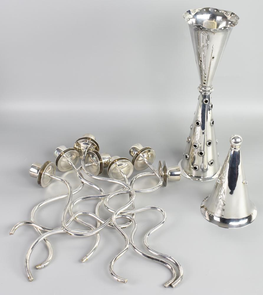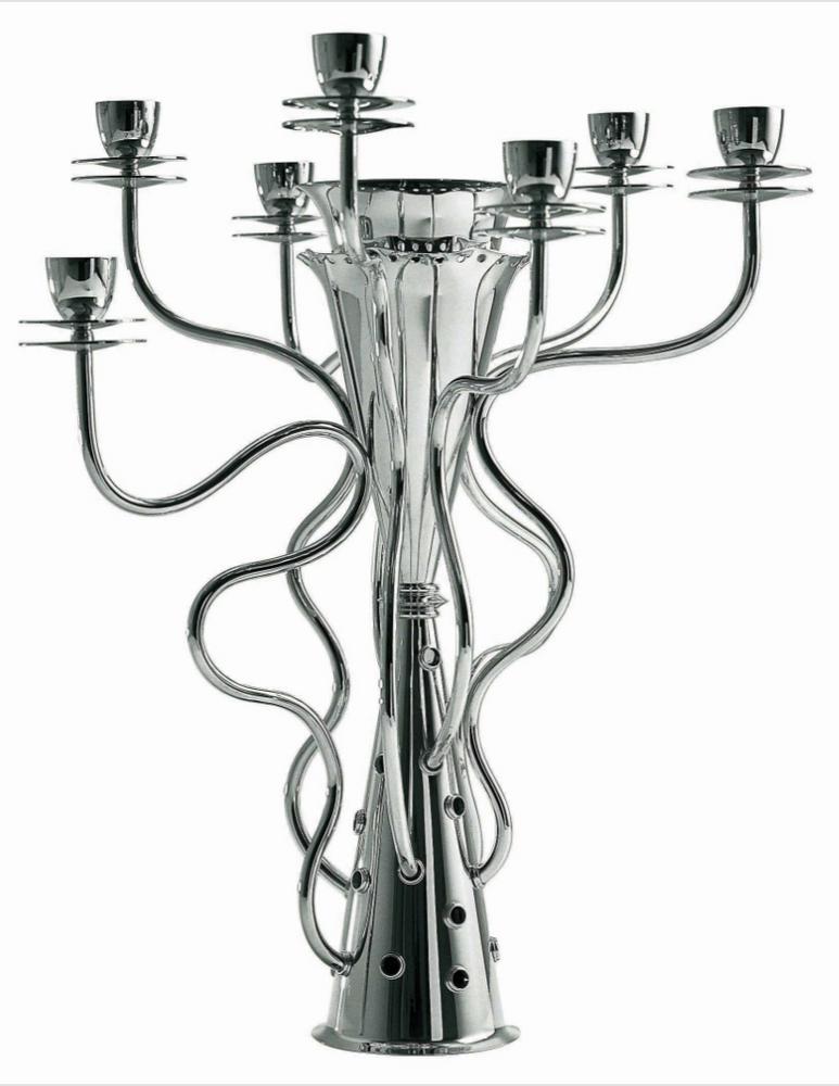candeliere a 7 fuochi con struttura realizzata in metallo argentato