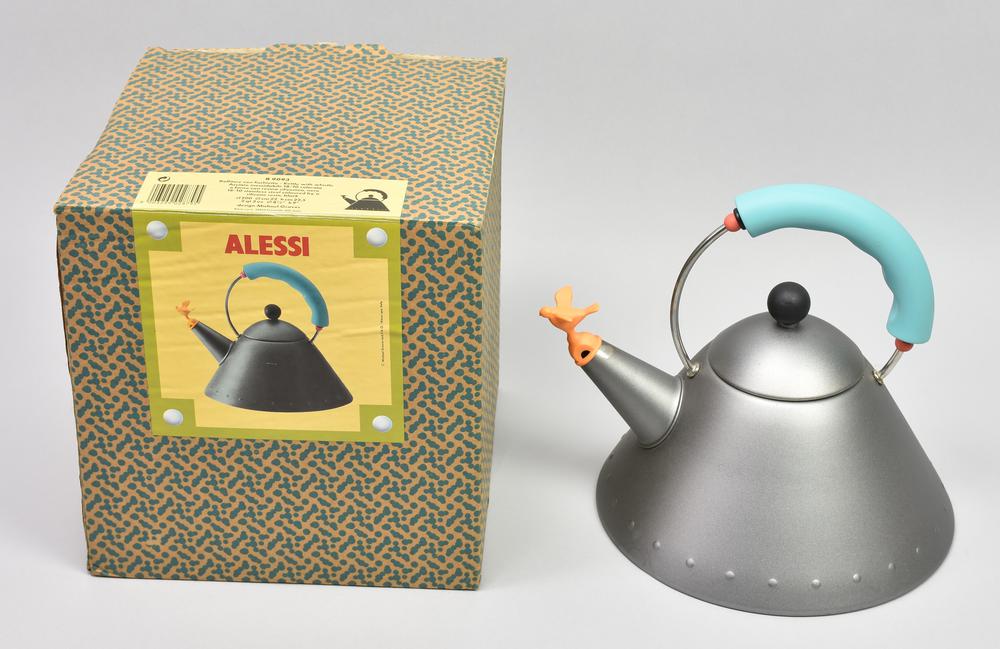 Michael Graves B 9093 PER ALESSI, 1985 bollitore in metallo con inserti in...