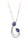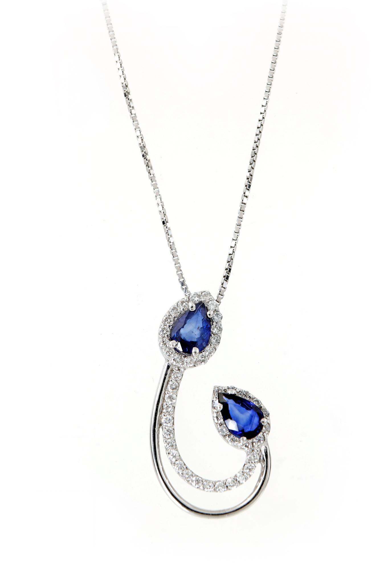 Pendente in oro, brillanti e zaffiri Oro bianco 750/000. Diamanti in taglio rotondo brillante ct. 0,40 ca. , zaffiri in taglio goccia ct. 1 ca.Peso complessivo gr. 3,70 Lunghezza cm 45 - Pendente cm 3,5