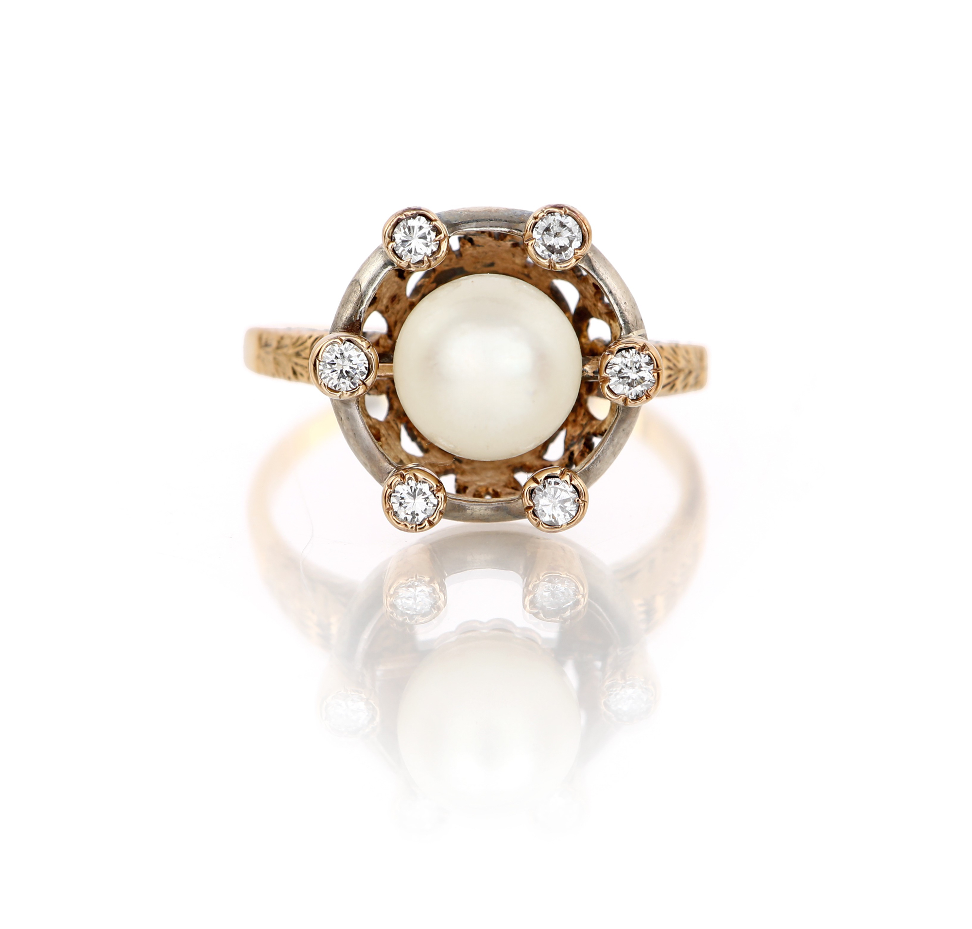 Lot 113 | Anello antico in oro e perla Oro giallo 750/000 e argento. Perla mm 7. Peso...