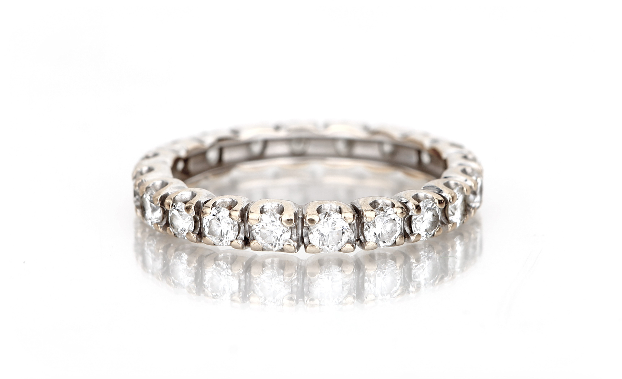 Riviera eternelle in oro e brillanti Oro bianco 750/000. Diamanti in taglio rotondo brillante ct. 1,50, prob G, VS-VVS. Peso complessivo gr. 4. Misura 19