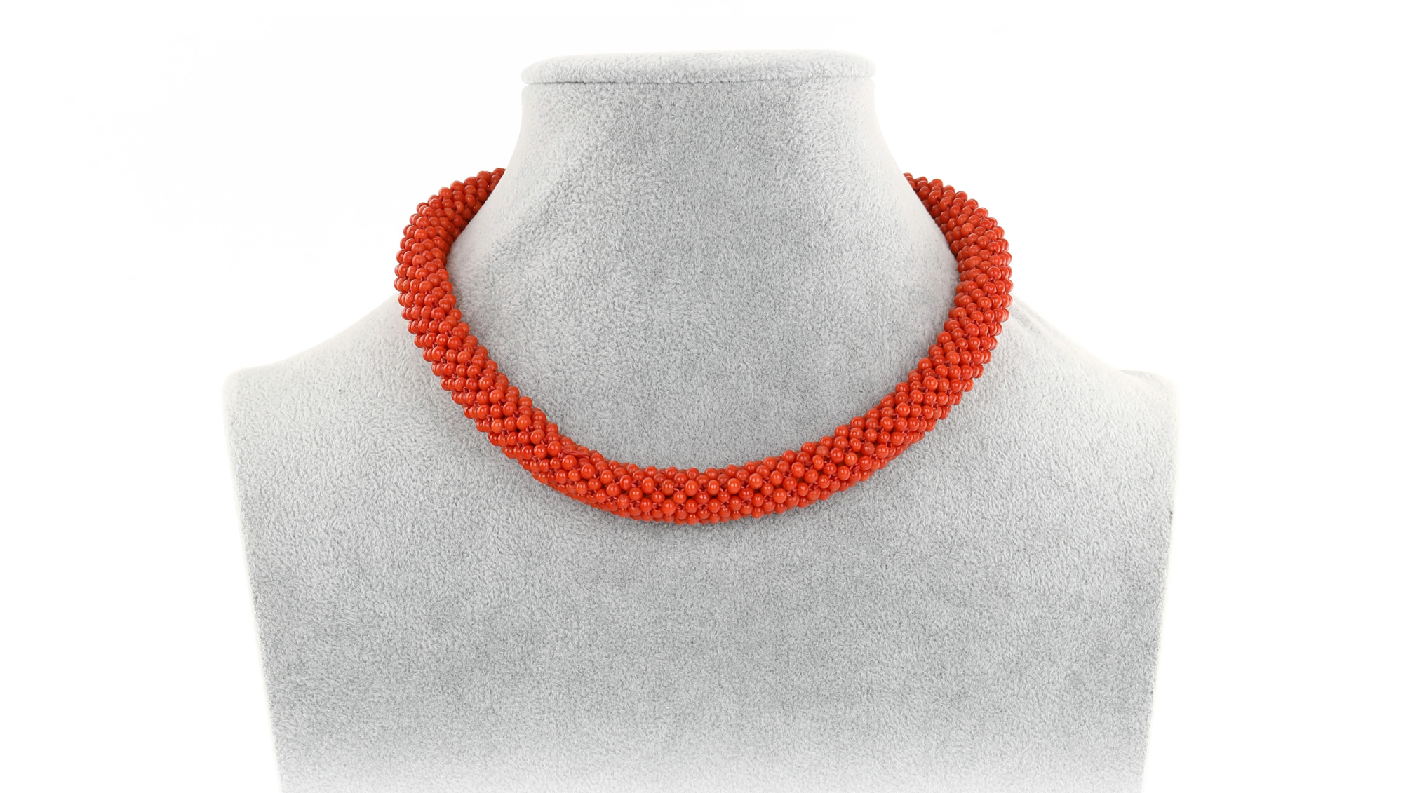 Lot 129 | Collana in corallo rosso con infilatura tubolare e chiusura in argento Peso...