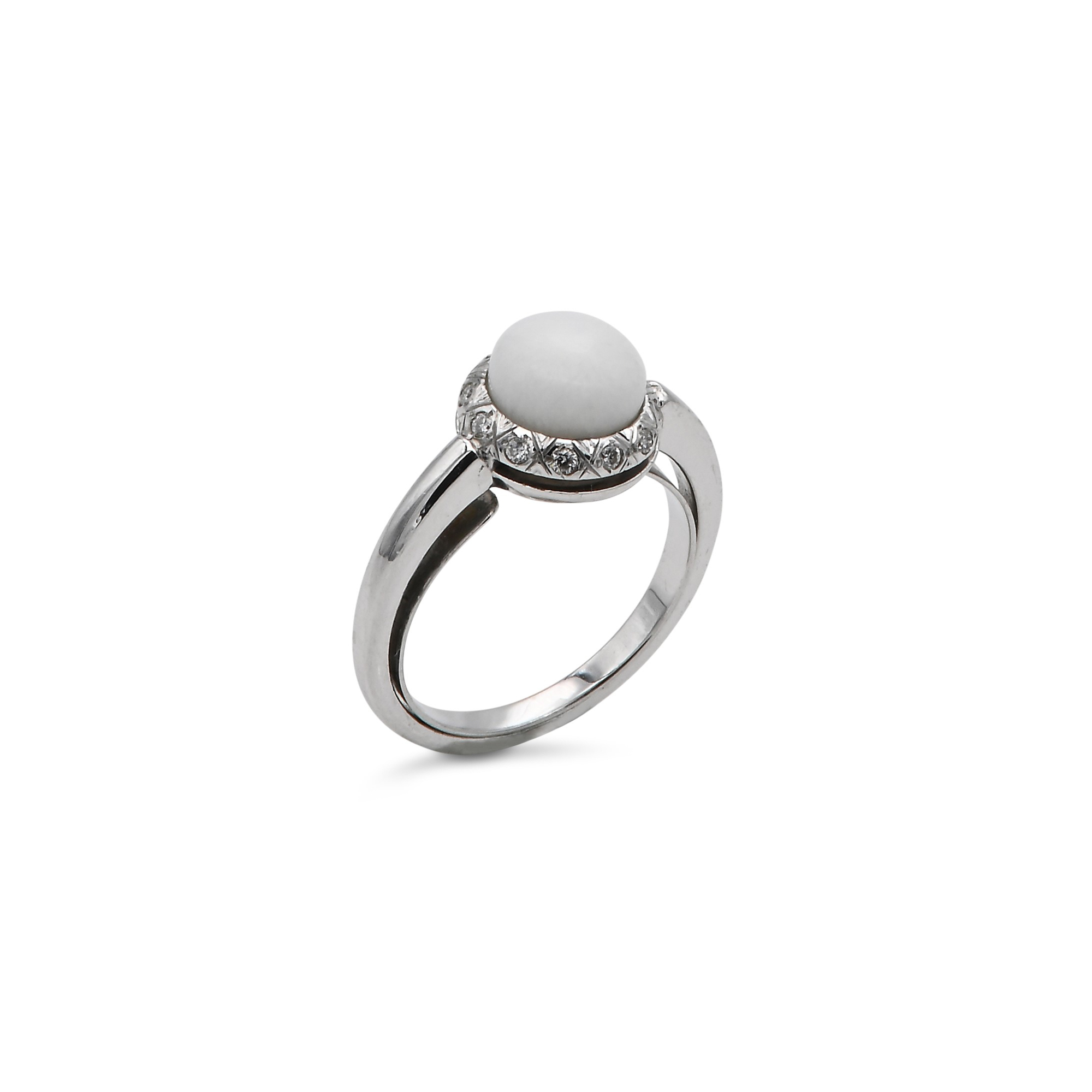 Lot 135 | Anello in oro, perla Clam e brillanti Oro bianco 750/000. Perla naturale...