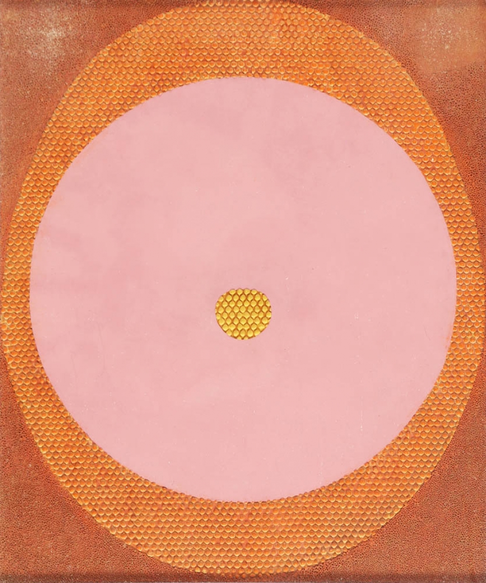 Nobuya Abe 1913 - 1971 " R. 19 ", 1965 Tecnica mista e rilievi su tavola, cm....