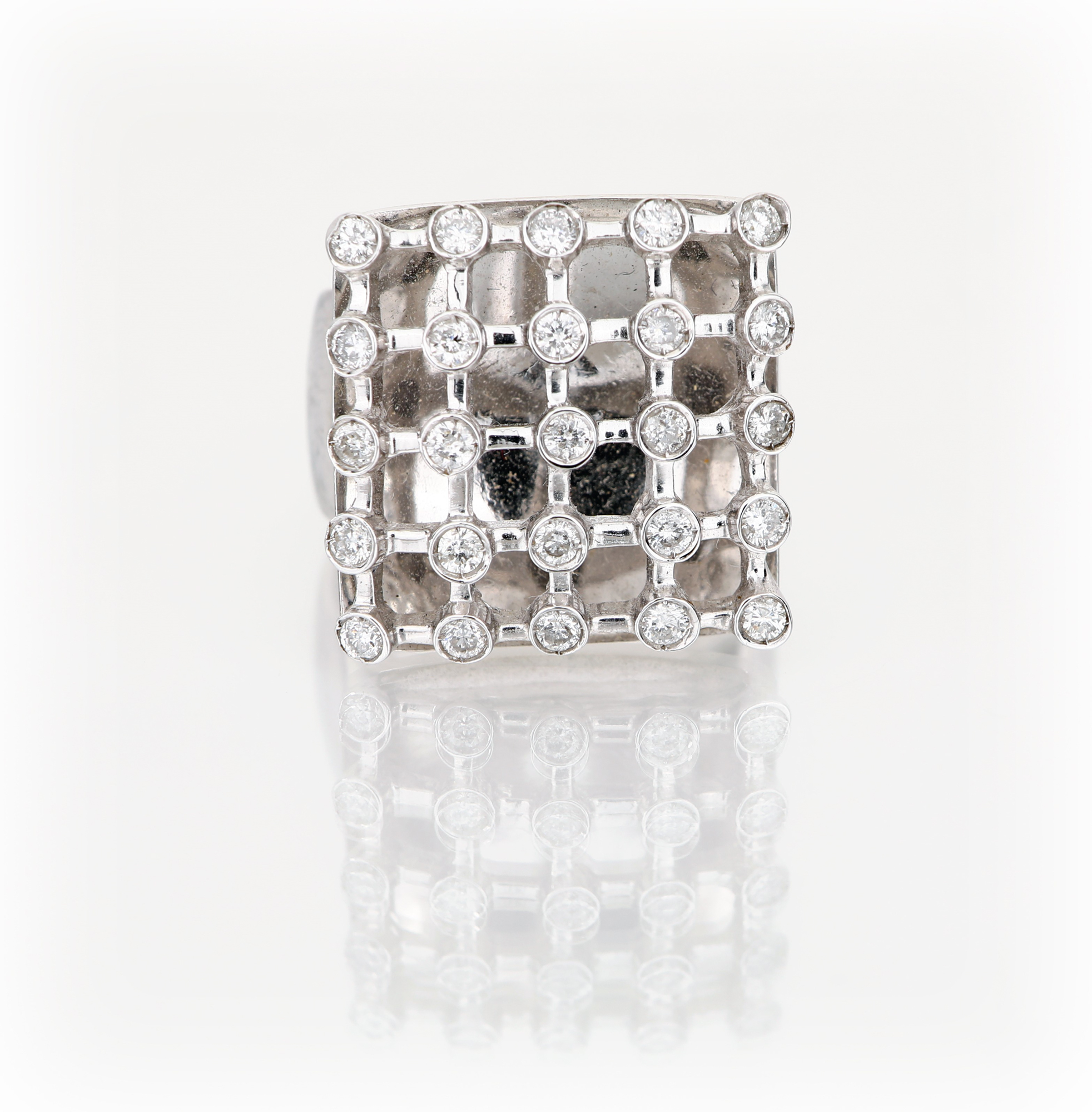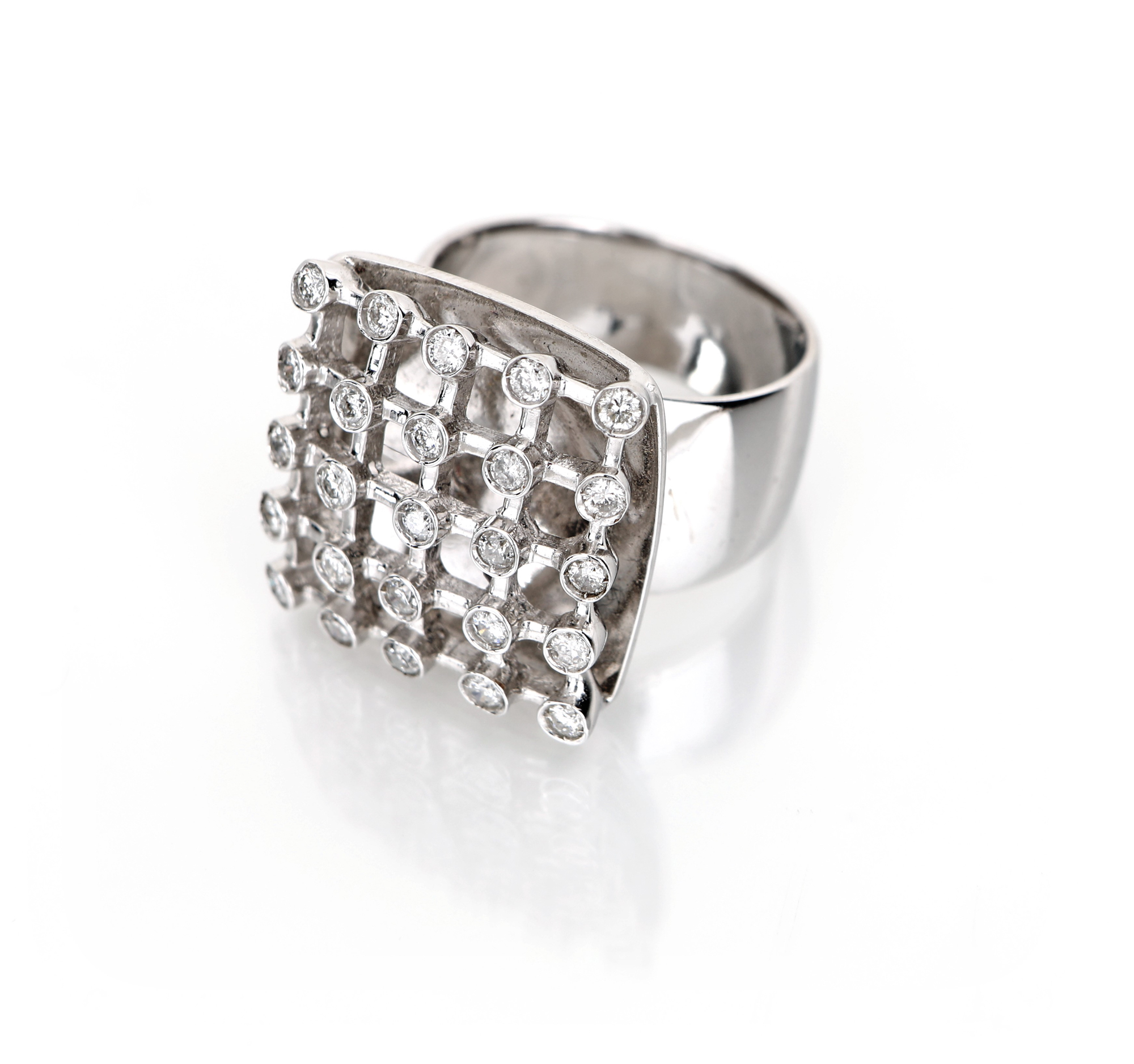 Lot 149 | Anello quadrato in oro e brillanti Oro bianco 750/000, diamante in taglio...