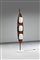 Struttura in legno curvato, metallo laccato e diffusori in vetro opalino satinato. Base in marmo