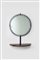 Struttura in metallo laccato, vetro specchiato, particolari in ottone e mensola in legno.